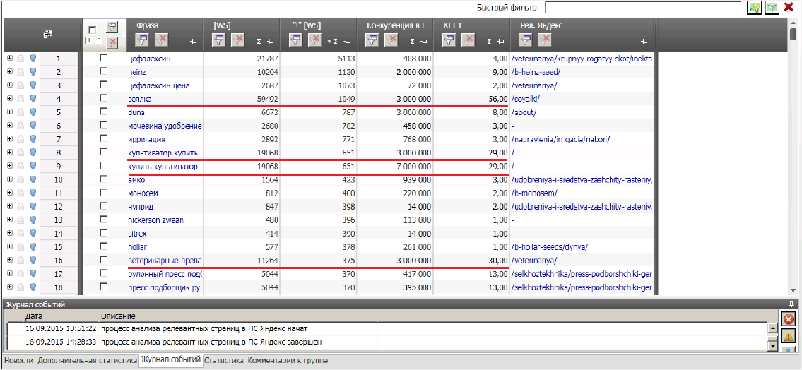 Все запросы имеют высокую с реднюю конкуренцию в ПС Яндекс.