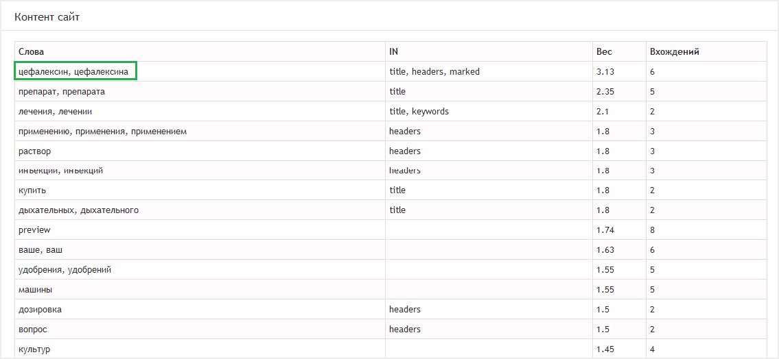 - Плотность ключевых слов – 2,04% (должно быть не более 3% и не менее 1,5%).
