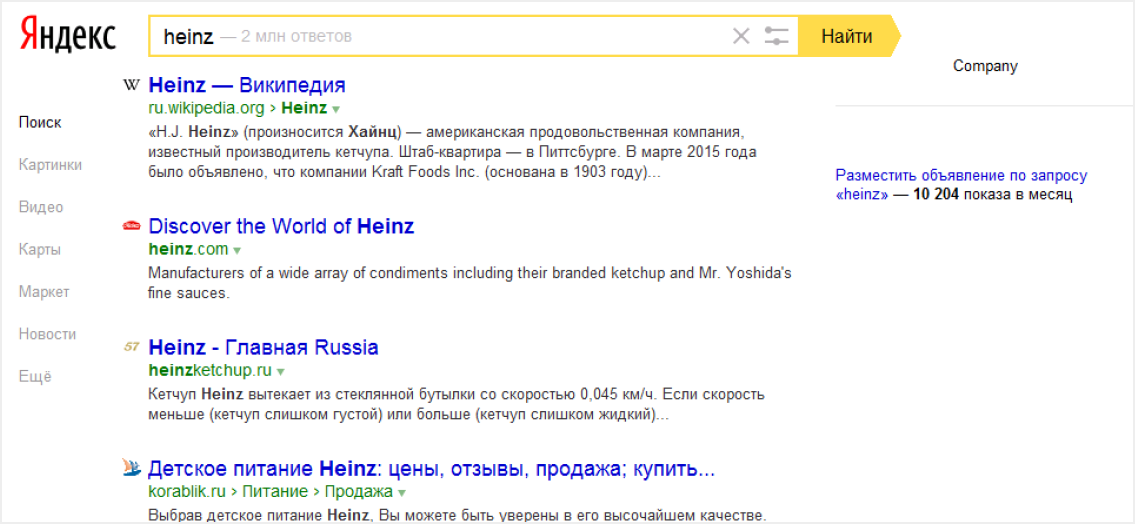 Яндекс считает это детским питанием, а не семенами томатов. Попасть в ТОП будет, ну очень трудно, если не невозможно. Т.е. нужно искать производные запросы типа «семена heinz» и т.п. и продвигать их.