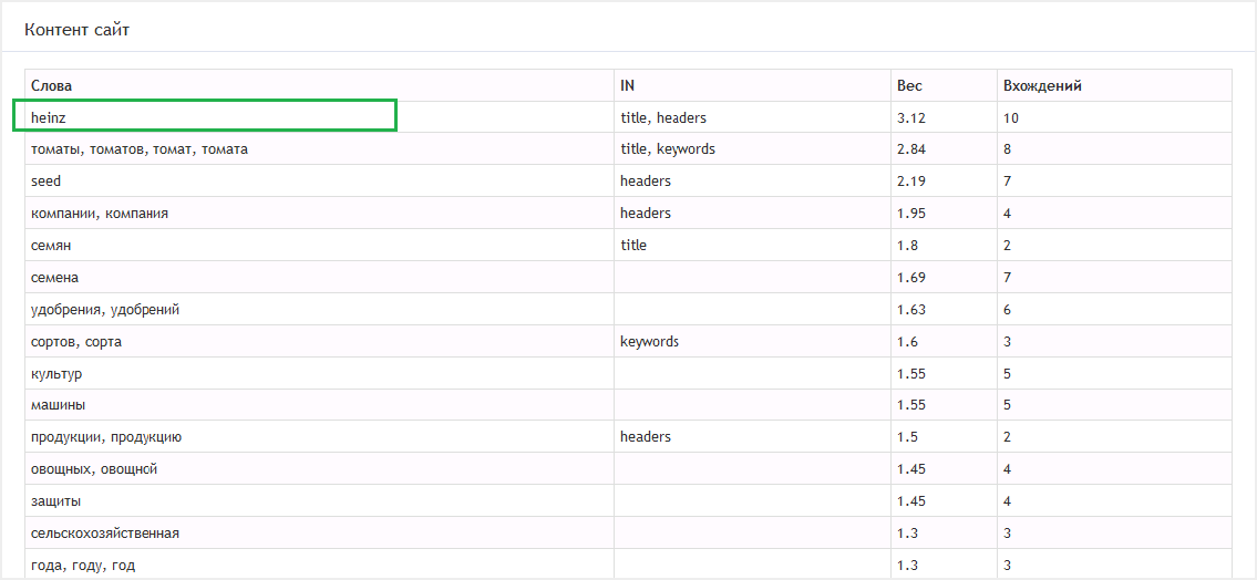 - Плотность h-заголовков – 3,57% (должно быть не более 3% и не менее 1,5%).