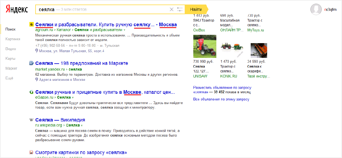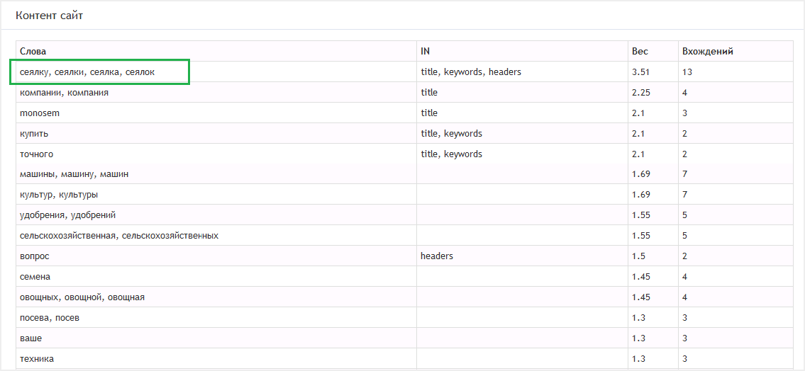 - 30% - разбавленное вхождение "надежная сеялка", и морфологические изменения запроса вида "недорогие сеялки" и т.п.