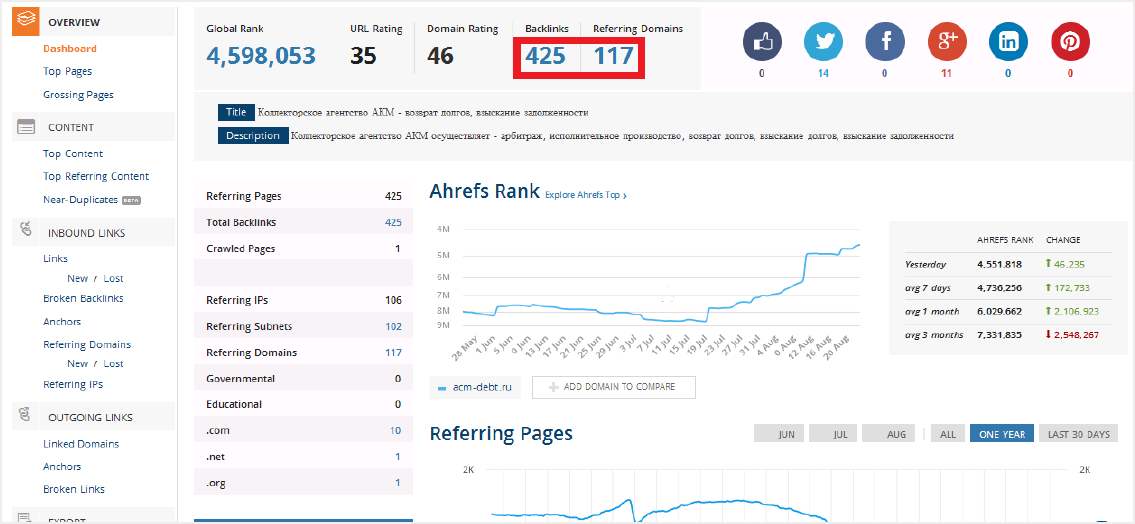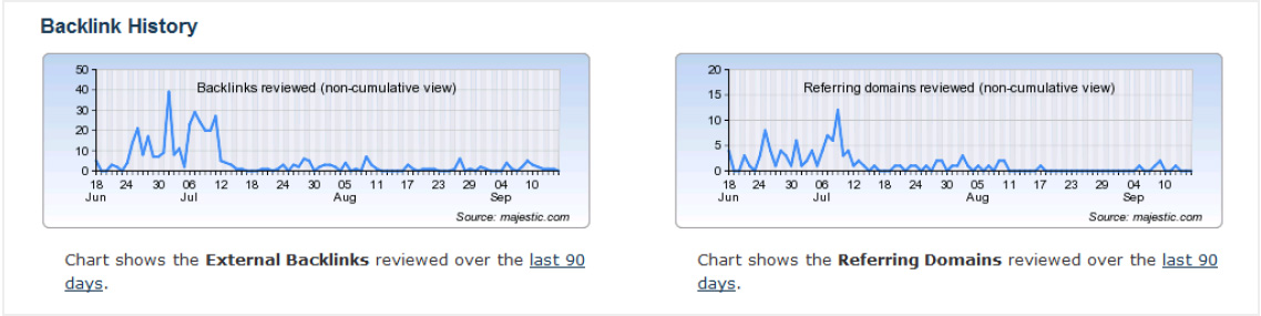 - Общее историческое кол-во – 1180 (ссылок)/242(доменов) (по Majesticseo)