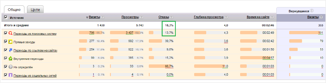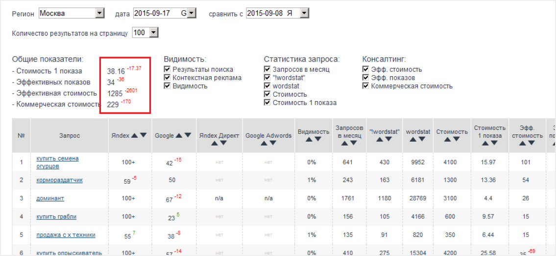 Все запросы, имеющие отношение (базовая частотность)/(«!точное !вхождение») > 10 для коммерческих сайтов, и >15 для информационных сайтов, являются неэффективными и продвижение их, как правило, экономически не оправдано. Подобные запросы имеют мало поискового трафика, а базовые частотности входят в состав других, либо более многословных запросов, либо вводятся пользователями ПС в другой морфологической форме.