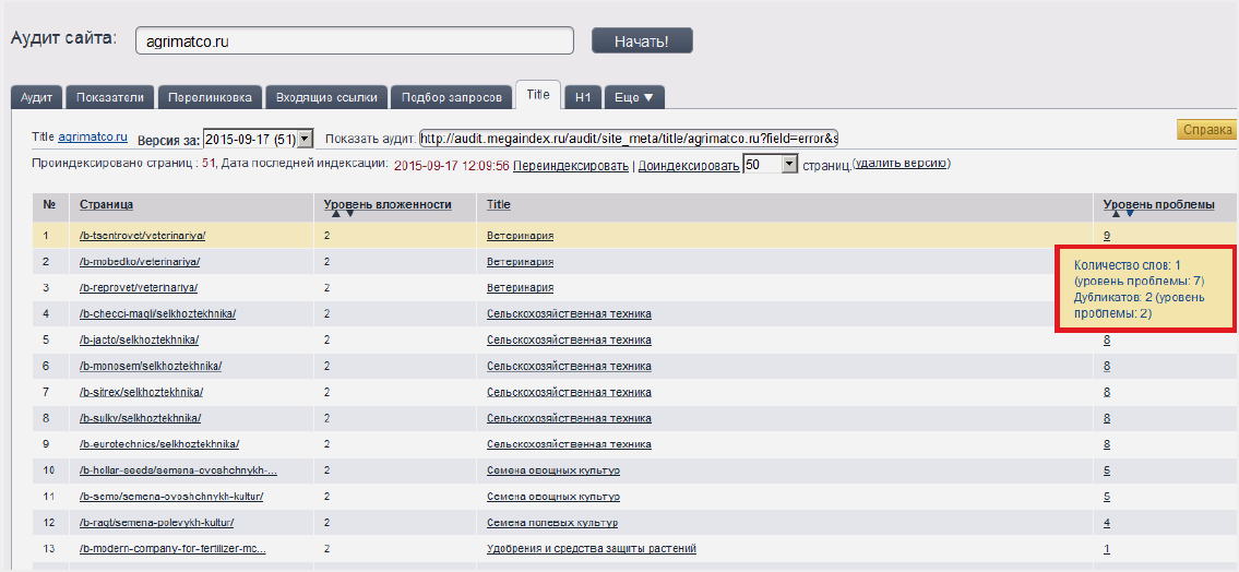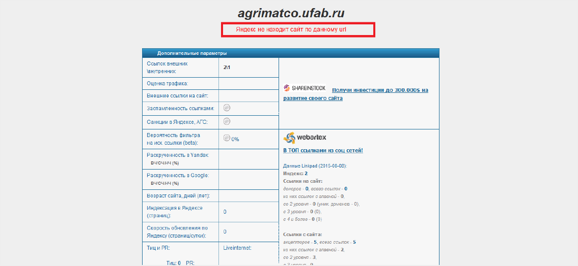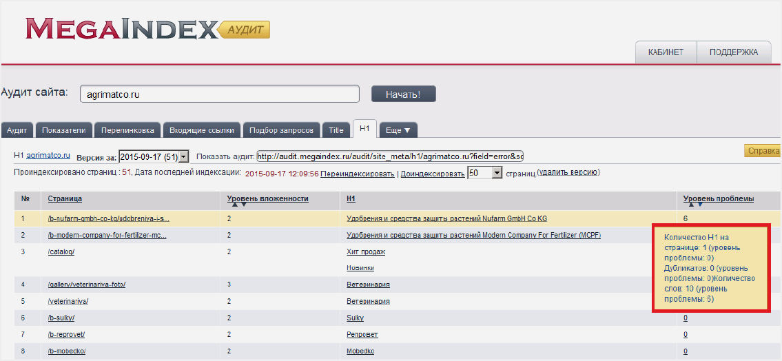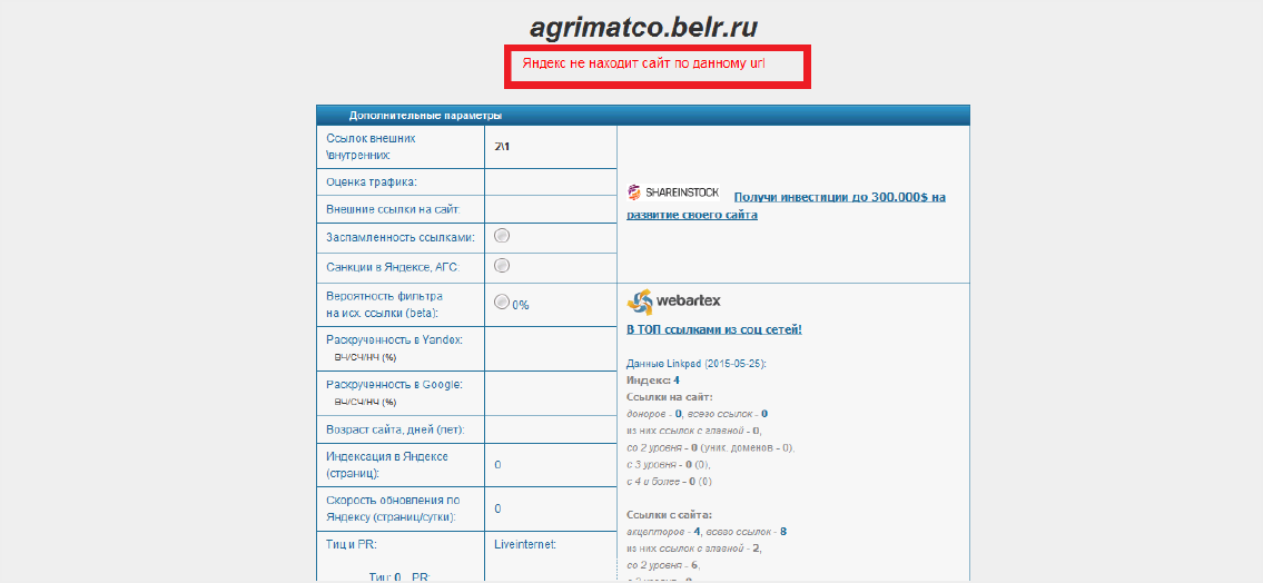 - Видимость сайта (https://www.megaindex.ru/index.php?tab=siteAnalyze&site=http%3A%2F%2Fwww.agrimatco.ru%2F):