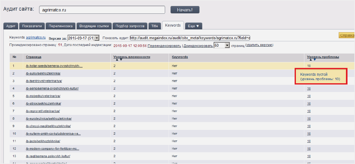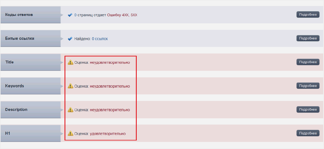 - Релевантность ключевых слов –80% (должно быть не менее 85%).